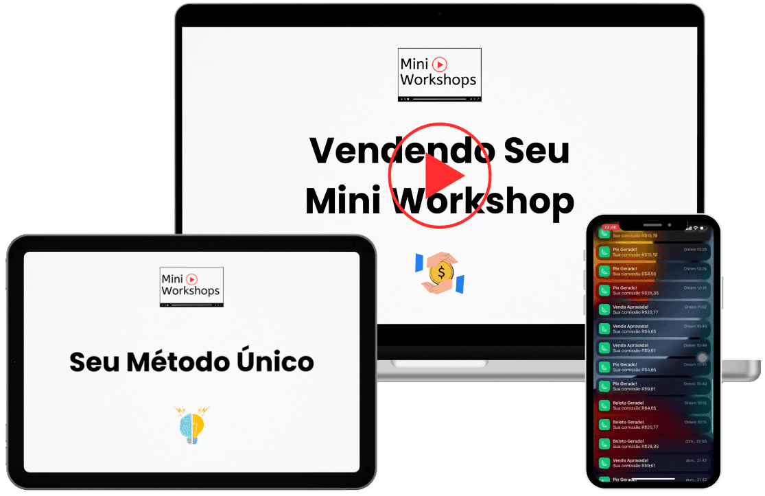 ✅ Você vai aprender a criar, vender e entregar seu Mini Workshop com um método simples e prático.